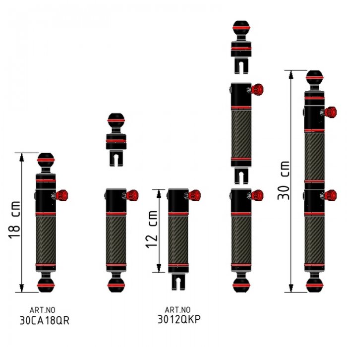 Questo sistema permette di avere bracci di lunghezza regolabile, a seconda del suo utilizzo per fotografia macro o wide. Ideale in viaggio per avere un set compatto e comodo per il trasporto.