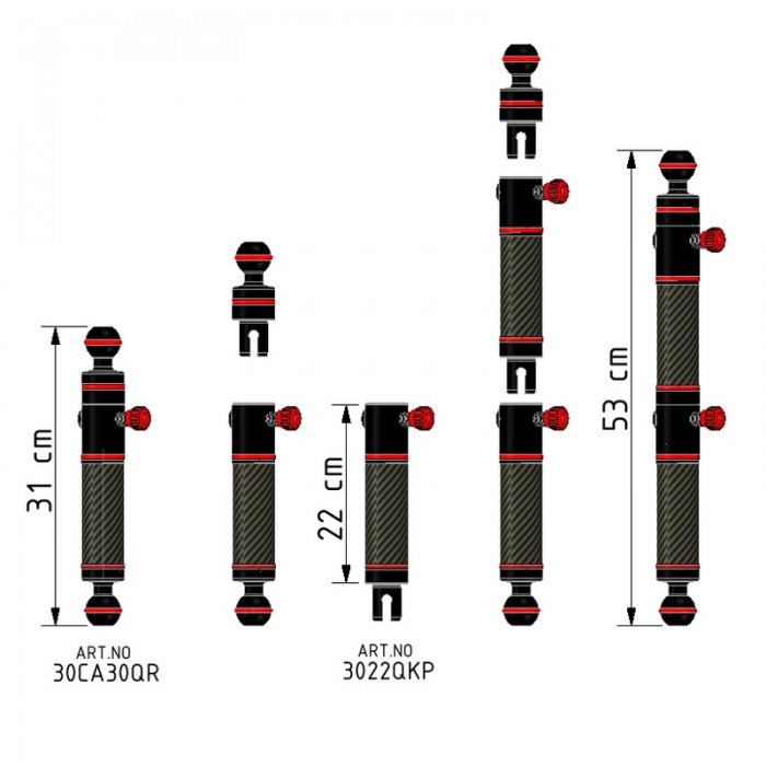 Estensione Braccio In Fibra di Carbonio Quick Release Sgancio Rapido Lung 22 cm