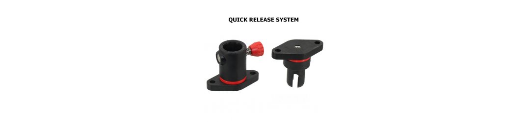 Lo sgancio rapido consente un facile fissaggio e rimozione dei componenti del braccio con la semplice pressione di un pulsante.