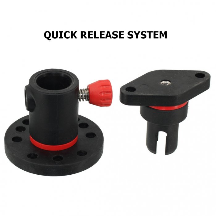 Lo sgancio rapido consente un facile fissaggio e rimozione dei componenti del braccio con la semplice pressione di un pulsante.