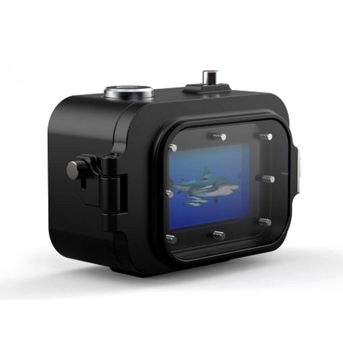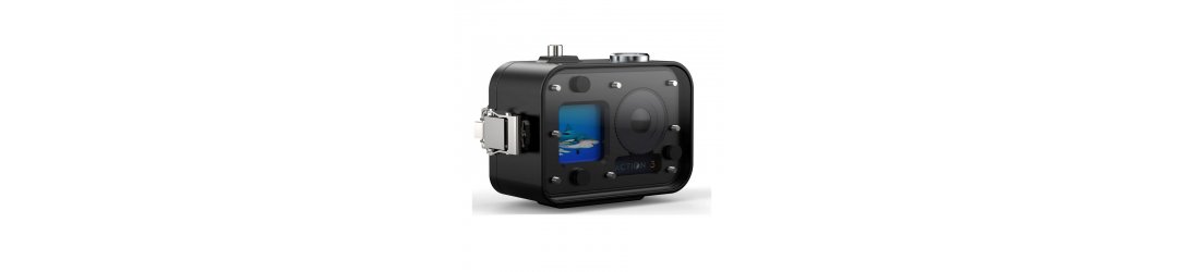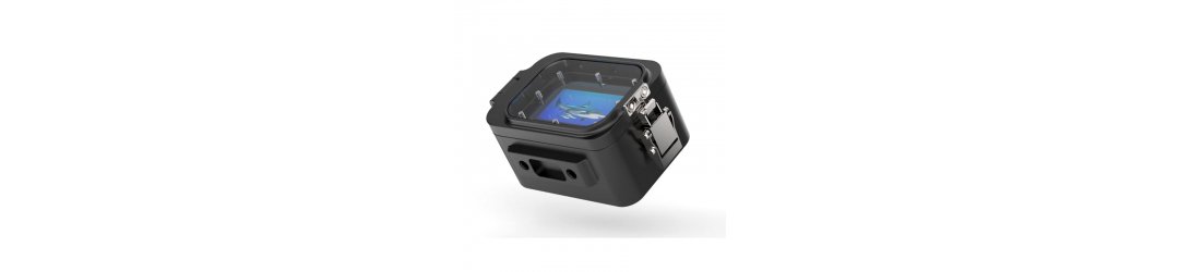 Fissaggio tramite due filettature per fotocamera da 1/4″ sulla base dell'alloggiamento. Se hai bisogno di un'opzione di attacco compatibile con GoPro, c'è un adattatore appropriato, che deve essere ordinato separatamente.