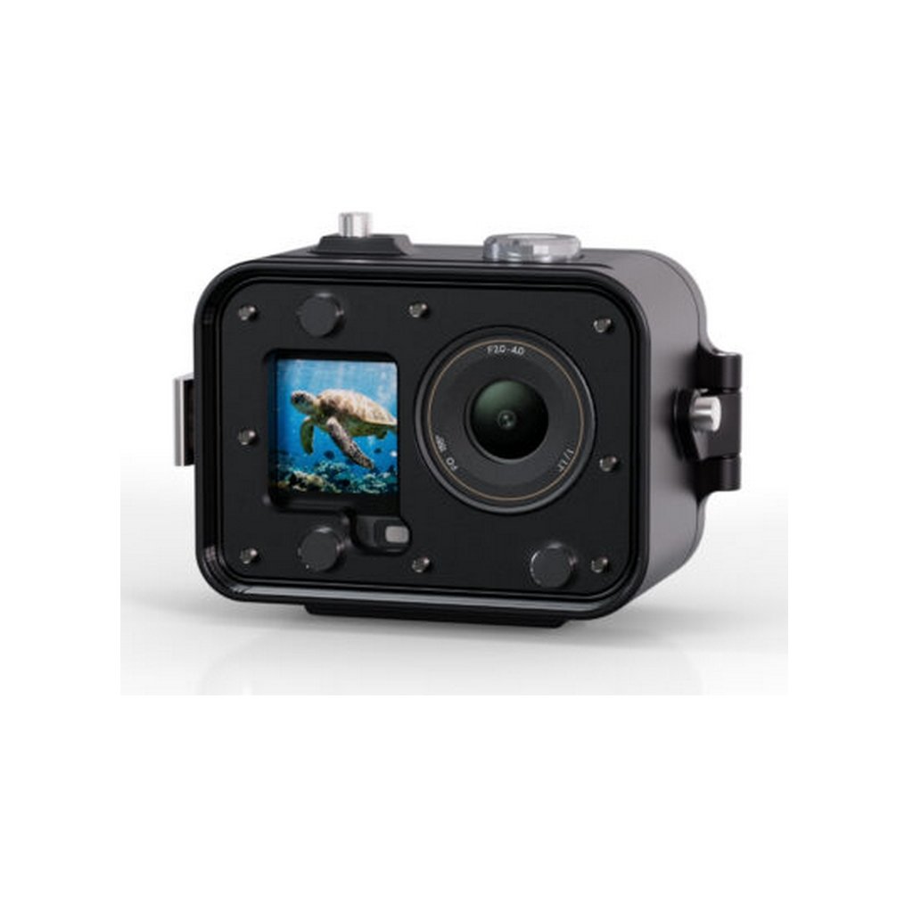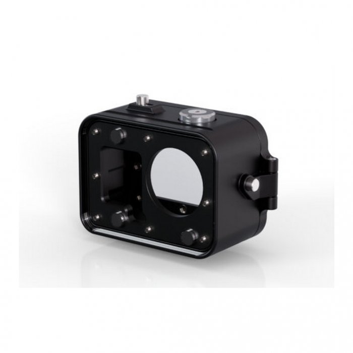 Fissaggio tramite due filettature per fotocamera da 1/4″ sulla base dell'alloggiamento. Se hai bisogno di un'opzione di attacco compatibile con GoPro, c'è un adattatore appropriato, che deve essere ordinato separatamente.
