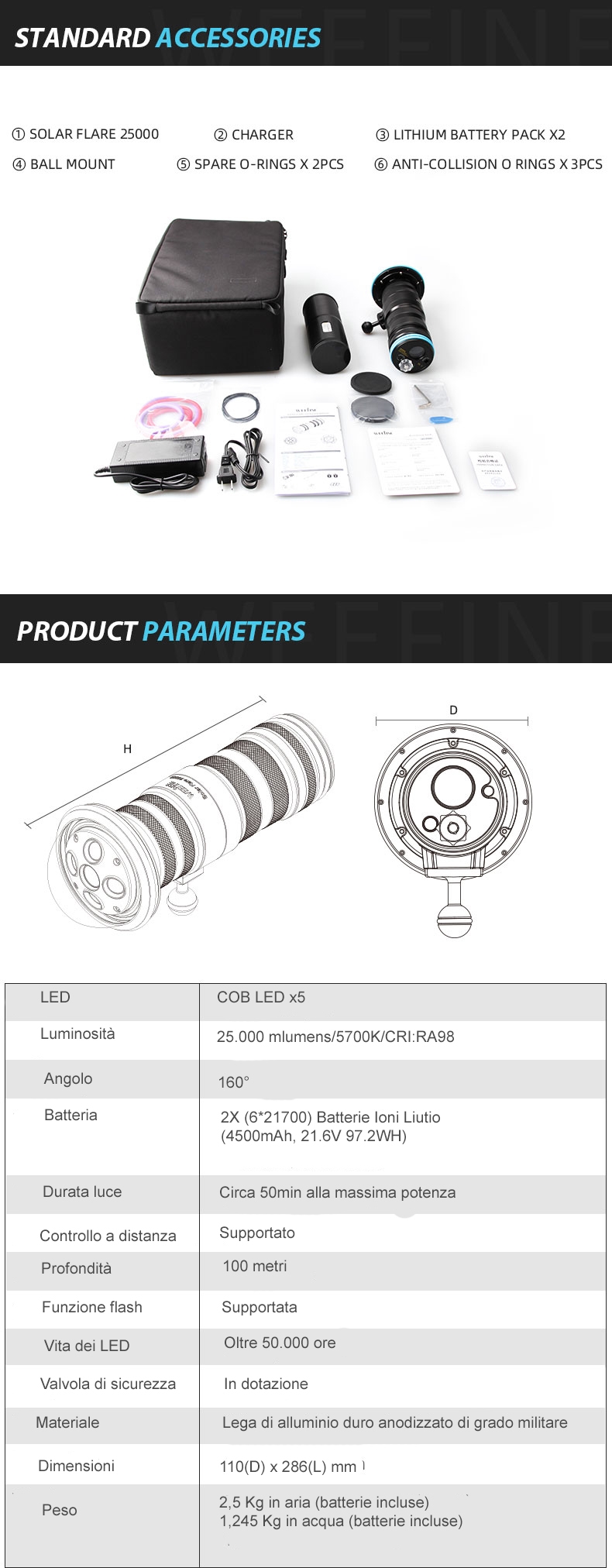 25.000 lumen di potenza a 160° con luce bianca e una potente serie di LED utilizzando i migliori LED CREE-