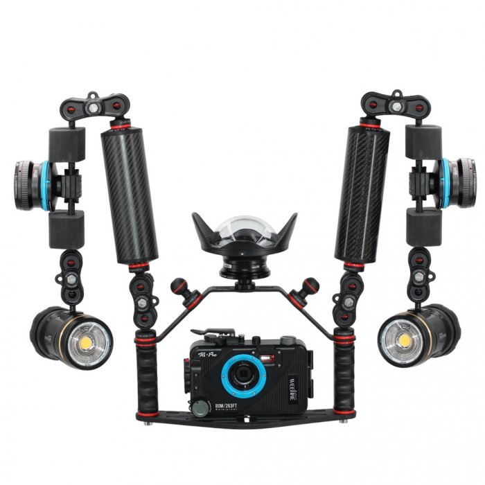 Questa barra di montaggio ti consente di dare maggiore stabilità alla tua attrezzatura. Con questa barra puoi collegare 3 sfere di montaggio o altri adattatori per collegare accessori aggiuntivi per le tue immersioni.