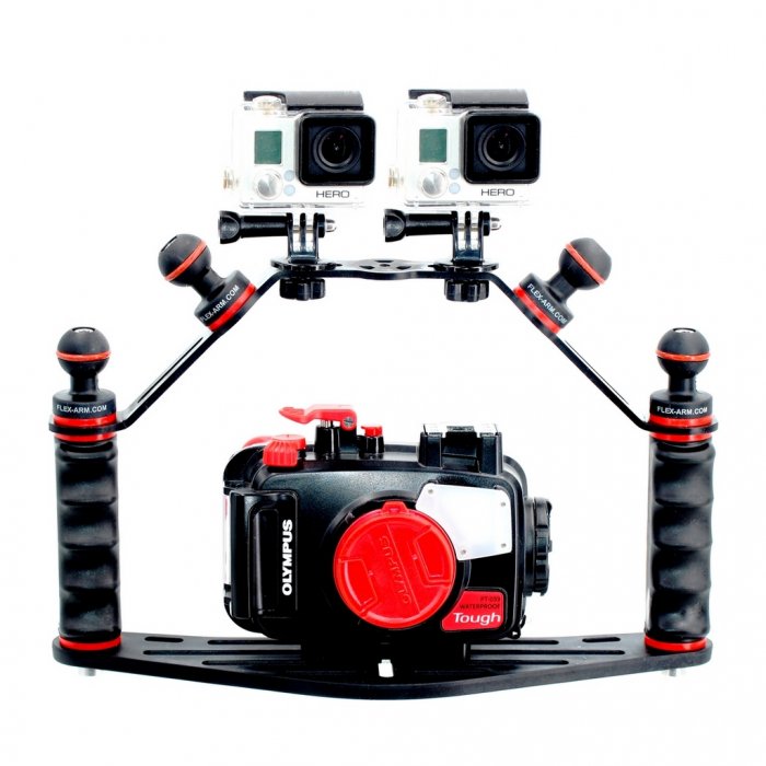 Questa barra di montaggio ti consente di dare maggiore stabilità alla tua attrezzatura. Con questa barra puoi collegare 3 sfere di montaggio o altri adattatori per collegare accessori aggiuntivi per le tue immersioni.