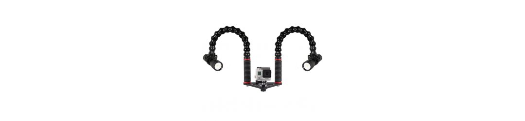 • Mini Staffa Subacquea Action Cam Doppia Impugnatura Bracci Flessibili Supporto Torce