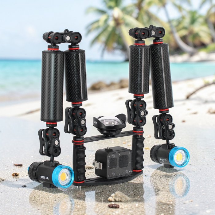Staffa Subacquea Action Cam per GoPro Kit 4 Bracci Galleggianti Illuminatori Weefine 14000 Lumen - PRO