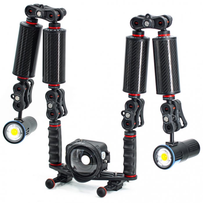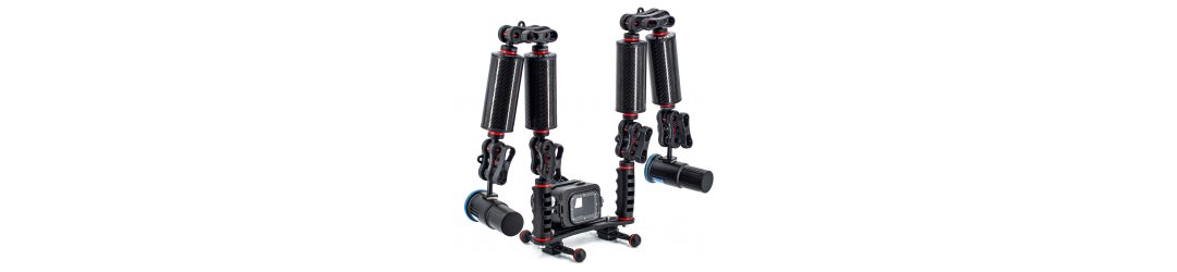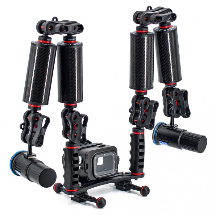 Staffa Subacquea Action Cam GoPro Kit 4 Bracci Galleggianti 250 g in Fibra di Carbonio e Terminali YS