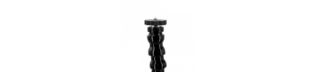 Staffa in tecnopolimero per il supporto di action cam e fotocamere subacquee, composta da impugnatura con braccetto flessibile con terminale filetto Maschio 1/4-20 UNC passo fotografico