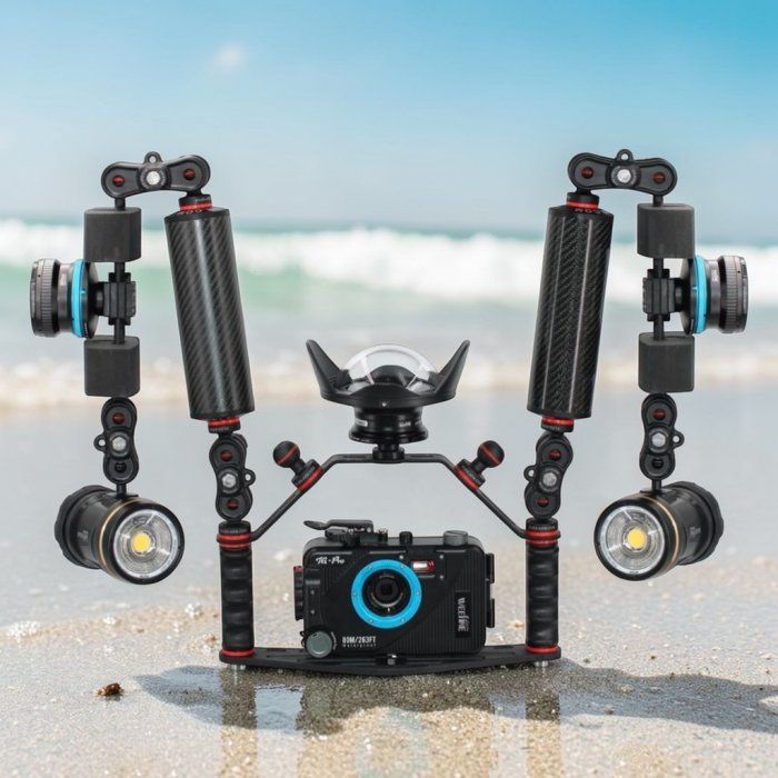Cross Bar ti consente di dare maggiore stabilità alla tua attrezzatura. Con questa barra puoi collegare 3 sfere di montaggio o altri adattatori per collegare accessori aggiuntivi per le tue immersioni.