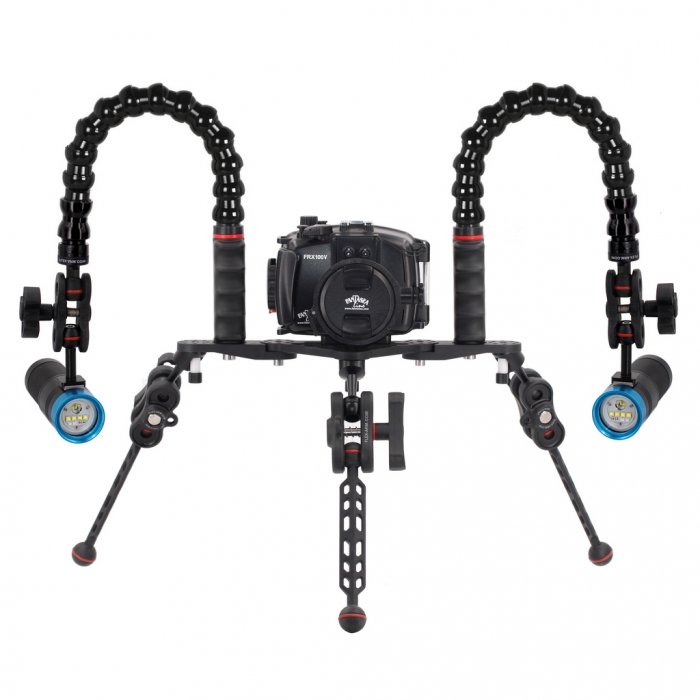 Grazie alle 3 sfere inclinate permette un appoggio ottimale diventando cosi una base per un treppiede subacqueo. Adatta sia per fotocamere compatte che per action cam