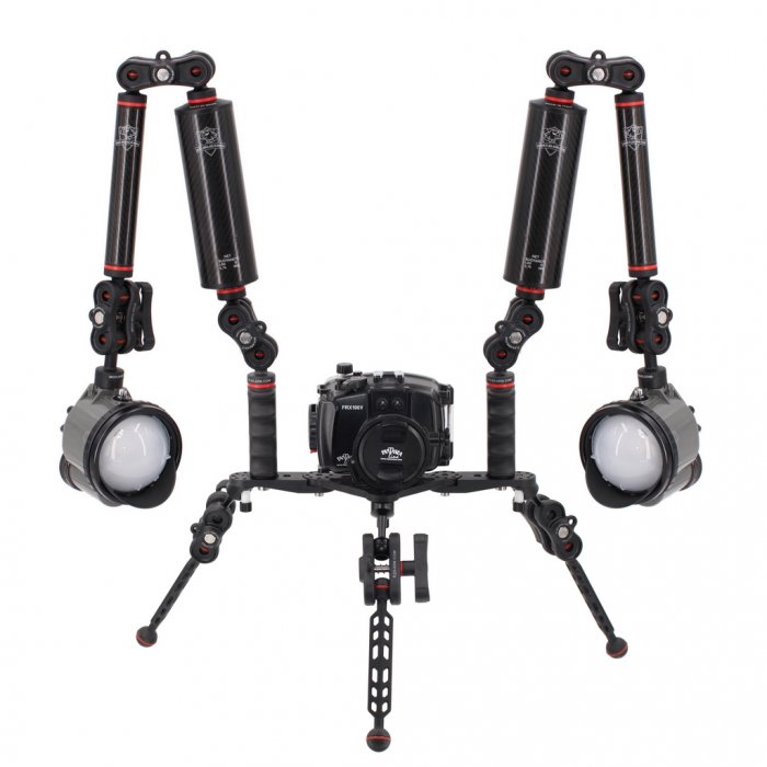 Grazie alle 3 sfere inclinate permette un appoggio ottimale diventando cosi una base per un treppiede subacqueo.